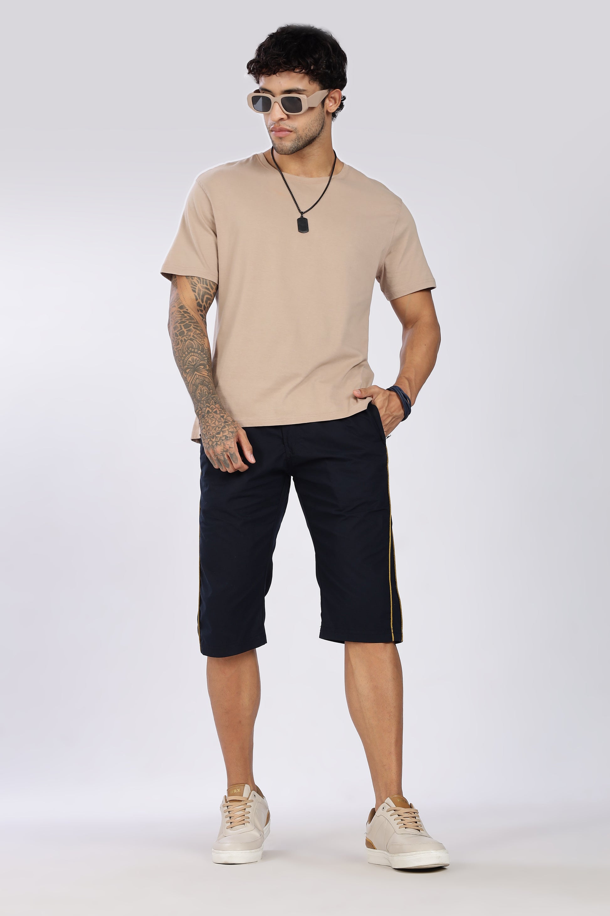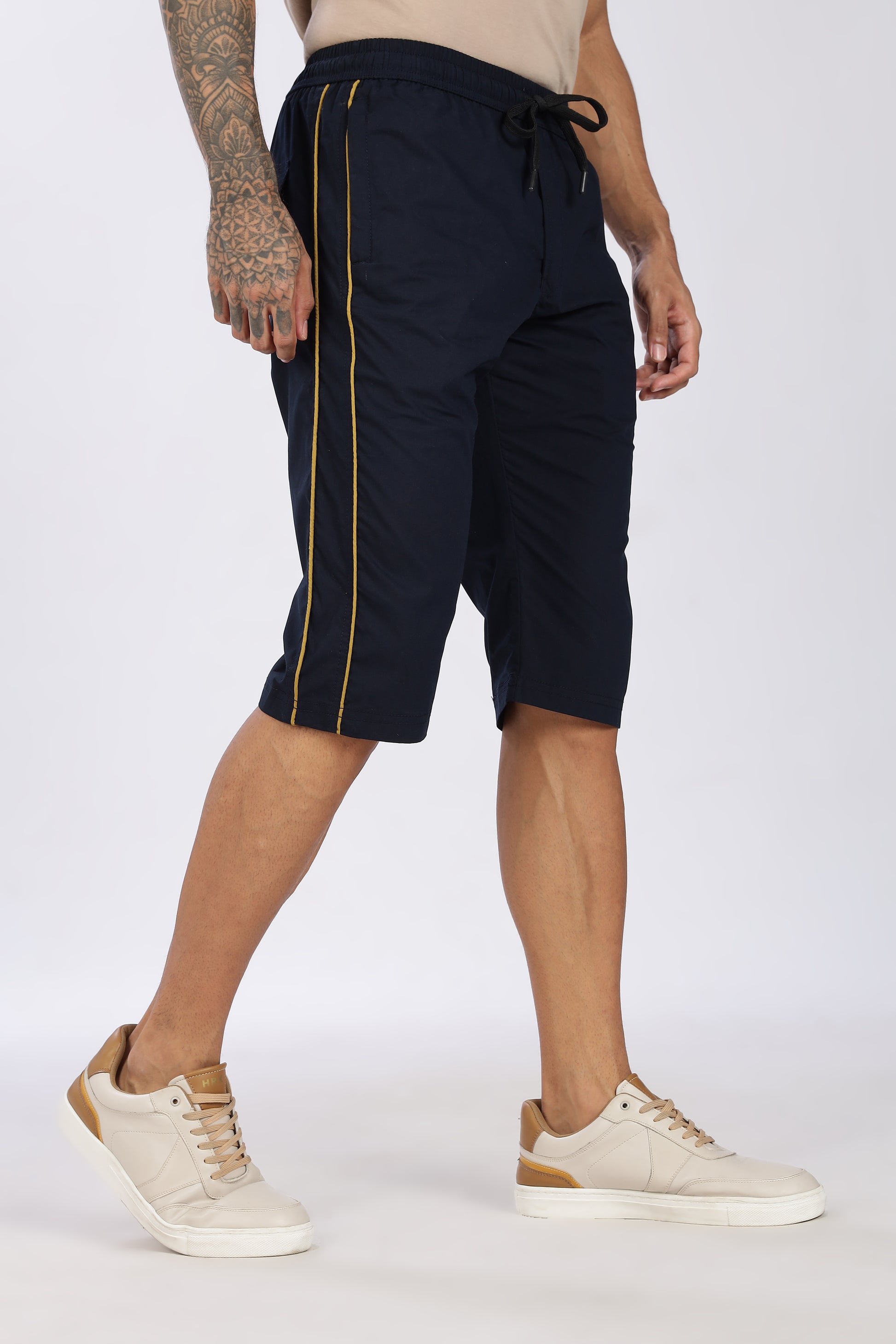 Men's Dark Blue Cool Comfort Capri Solid Print Comfort Cotton