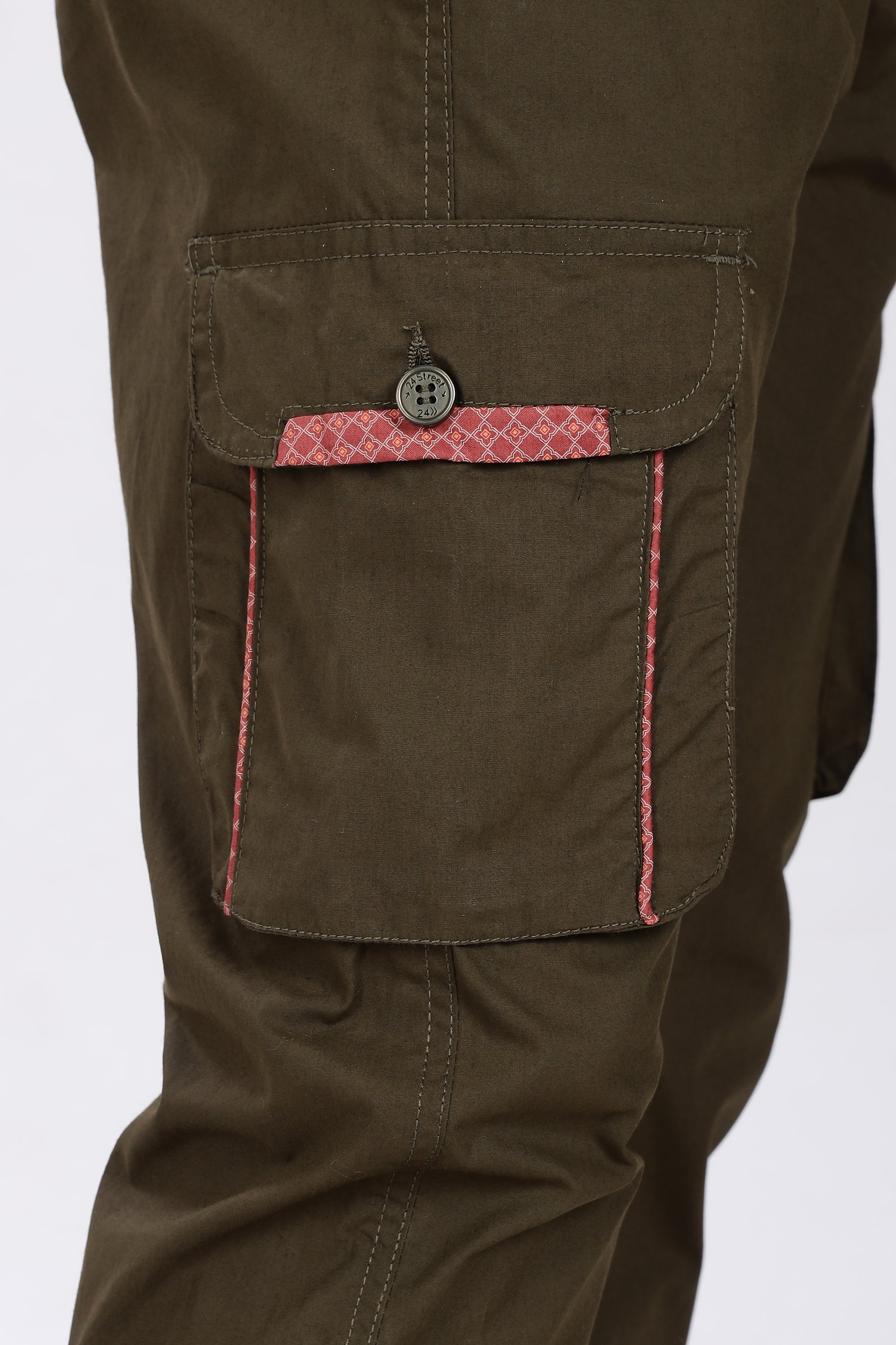 1 Front ZIPper Pocket + 1 Front Seam Pocket + 2 Side Cargo Pockets + 1 Back deep pocket with Flap