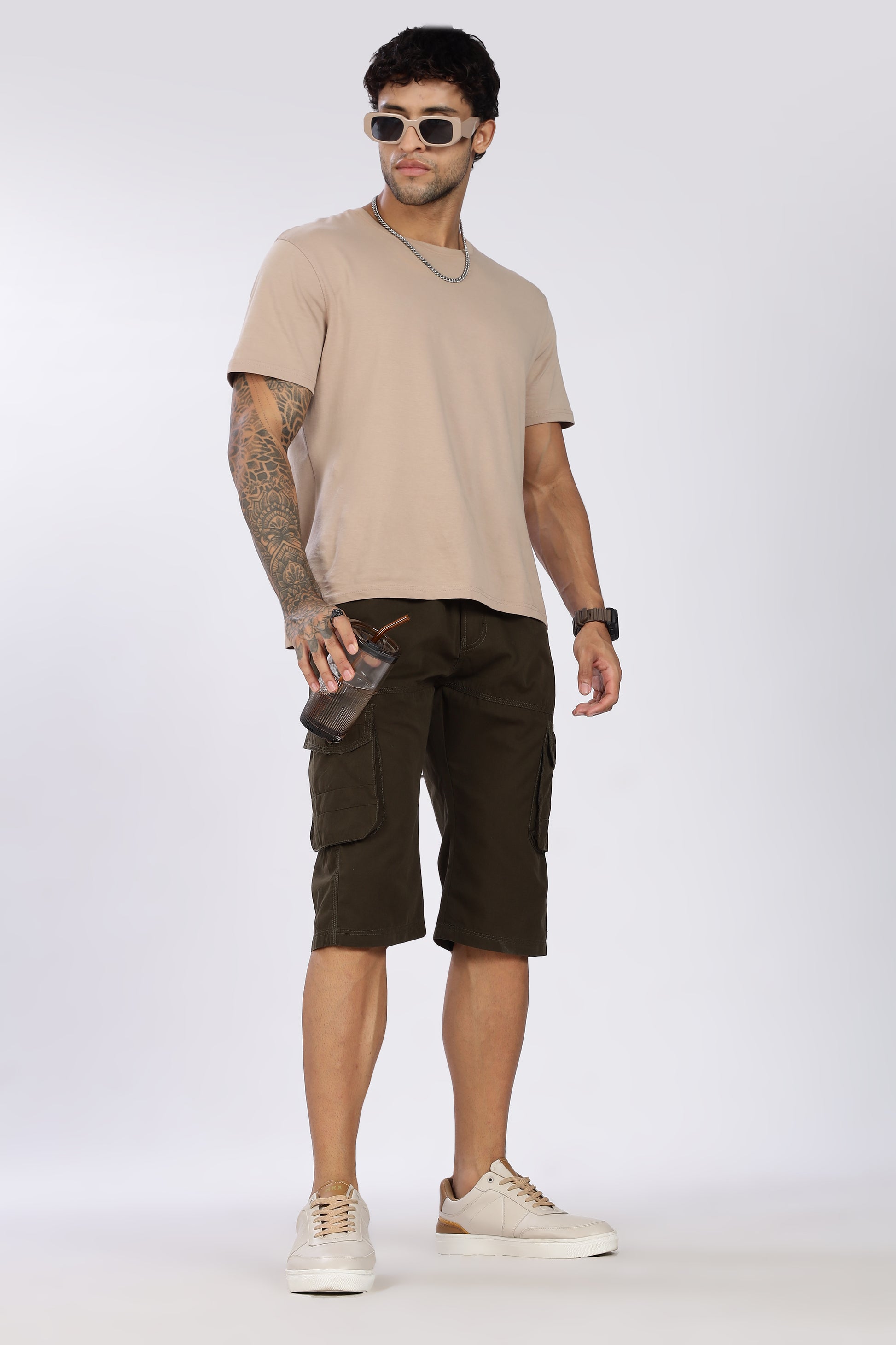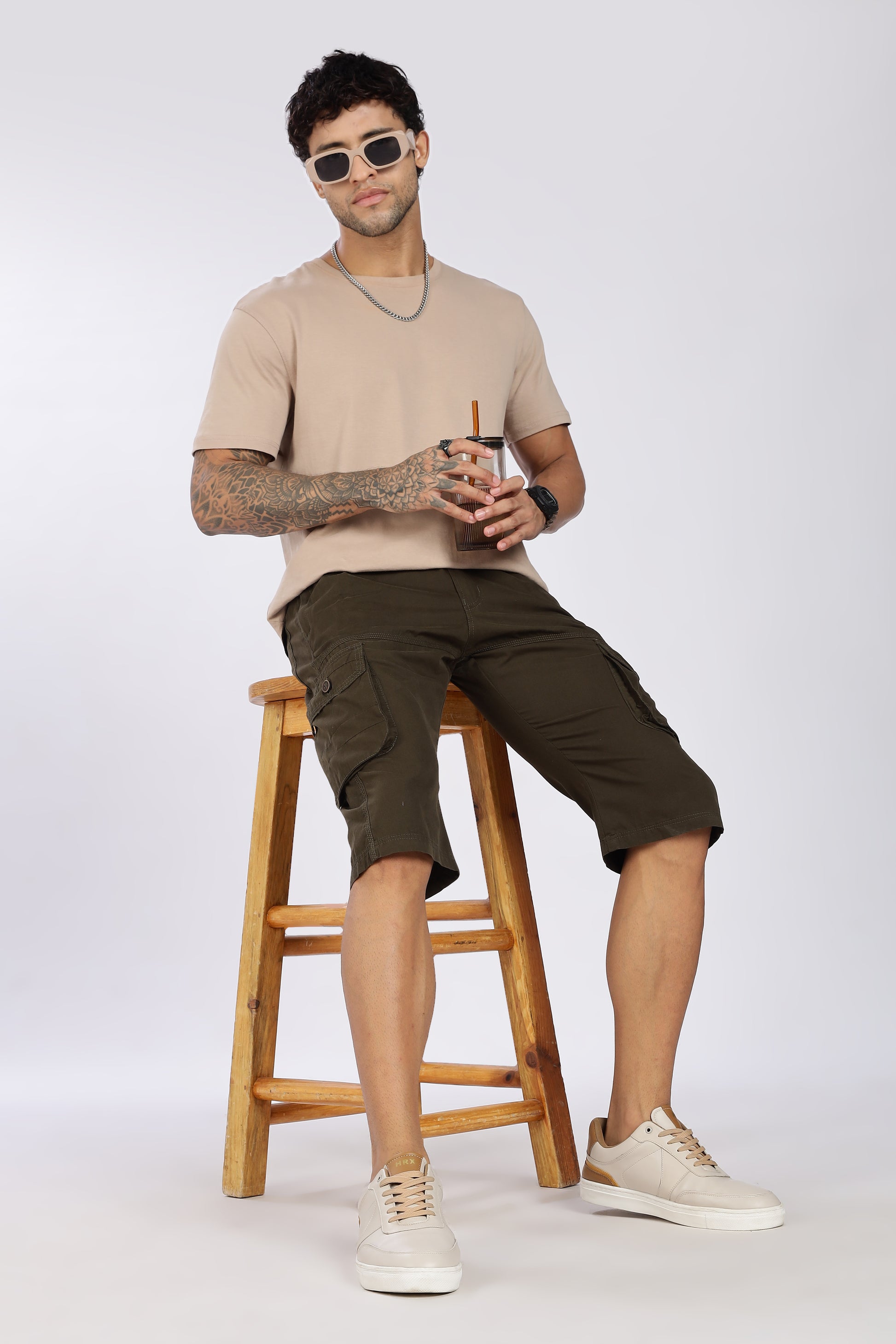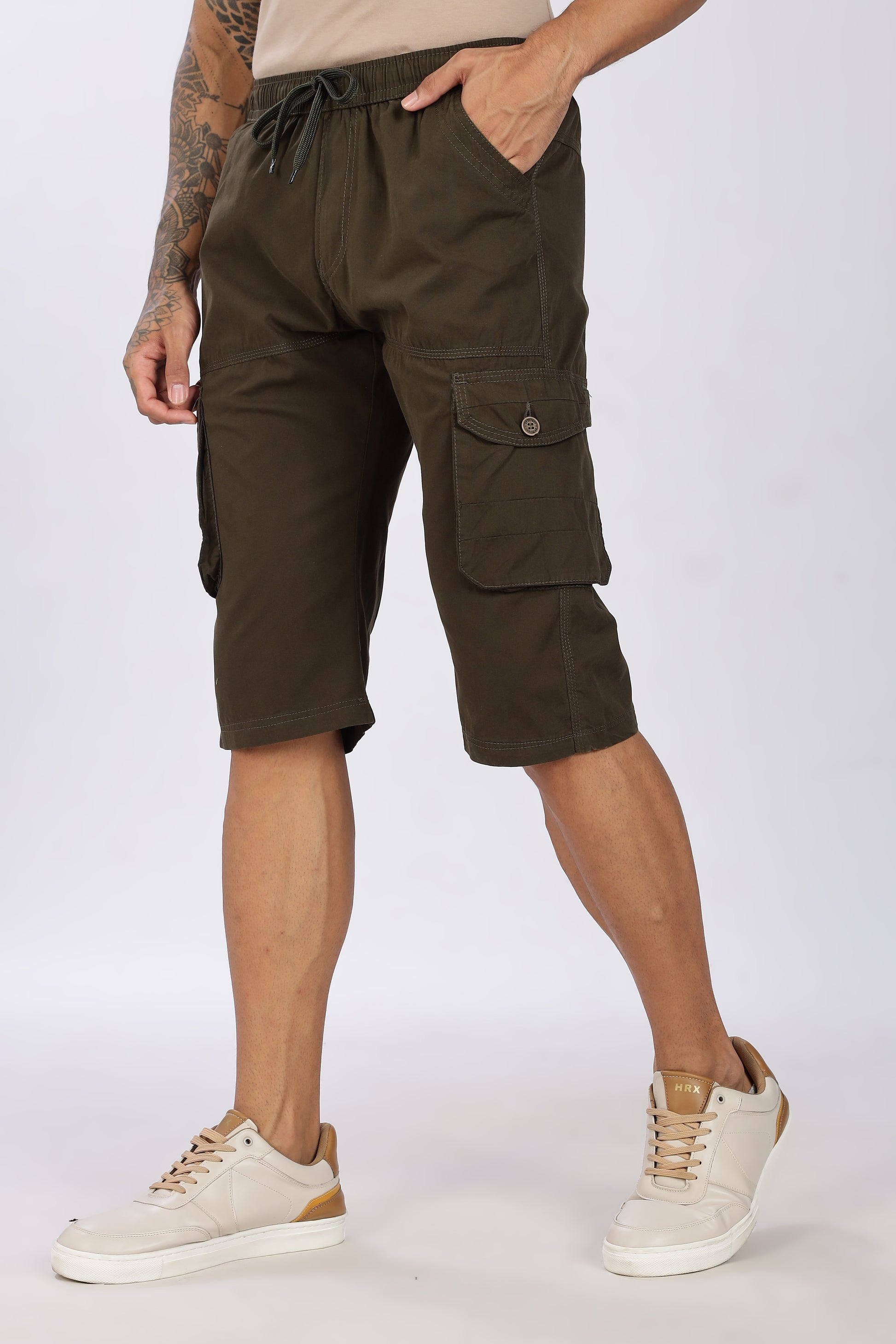 Men's Olive Green Trendy Trails Capri Solid Print Comfort Cotton