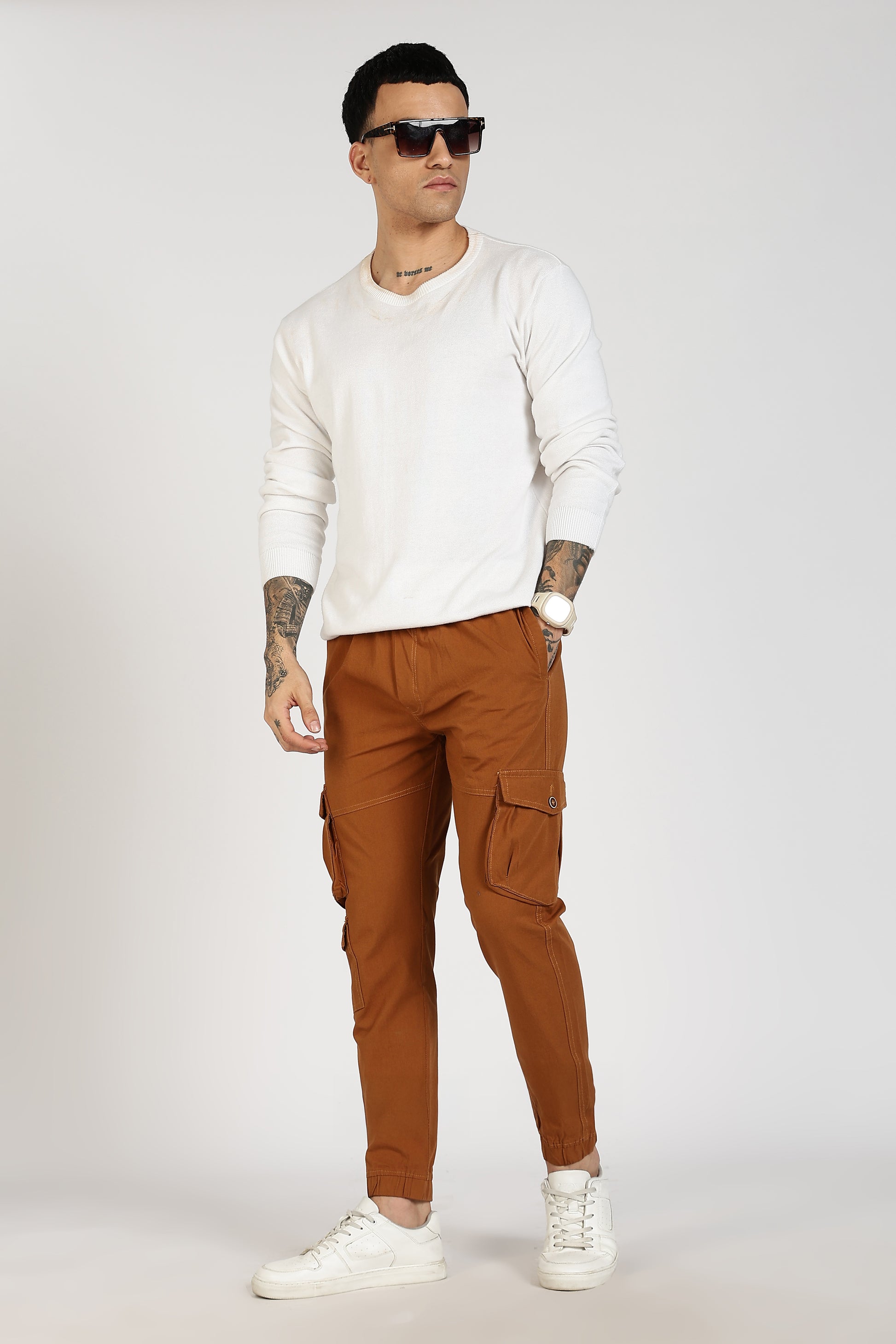 Men's Mustard Brown Sprint Ease Solid Jogger Cotton